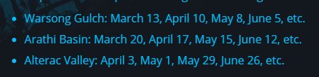 These are something I wasn’t even aware (or remembered) existed. Battleground Holidays are spans of several days when you can earn extra honor and rep in a specific battleground. And they are soon to roll out. Here’s the Holiday schedule as Blizzard has described it so far.