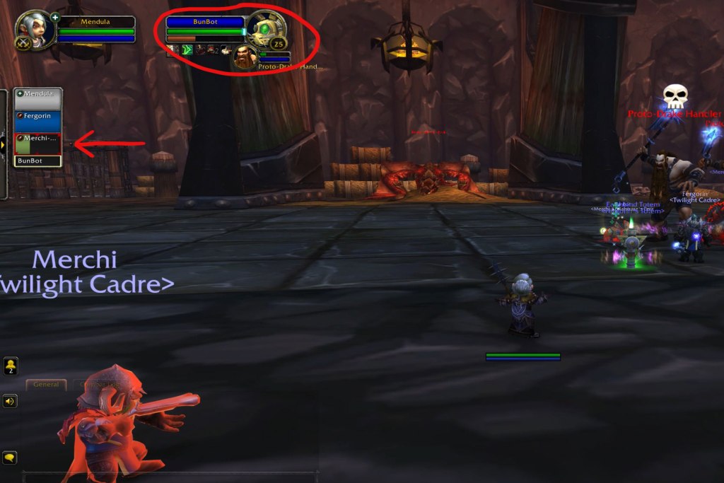 So to bring this down to a complete beginner’s level, I first considered how much healing someone needed and how fast they needed it. I quickly learned that this was not always BunPot; Merchi and Fergorin traded off in receiving their own fair share of damage. Small emergencies called for Flash Heal, I supposed, and large ones for Holy Word: Serenity. Heal and Renew were a little more tricky to assign.